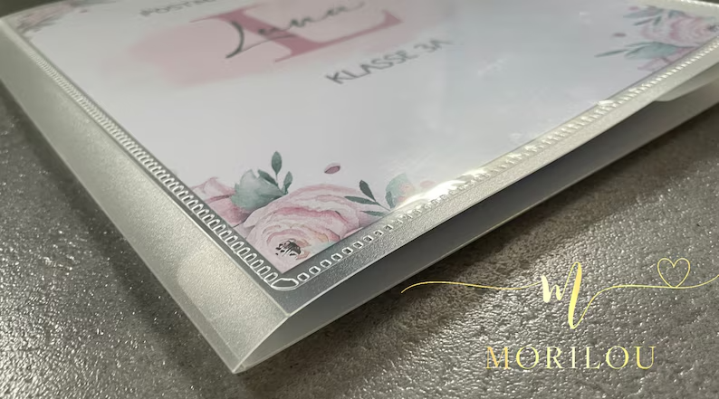 • mit Wunschtext personalisiert: Sammelmappe, Postmappe, Name, Klasse, Adresse – alles möglich!