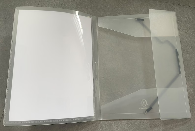 Das Cover wird nicht auf die Mappe gedruckt. Es handelt sich um ein Einsteckcover aus festem Papier, das jederzeit erneuert und ersetzt werden kann!